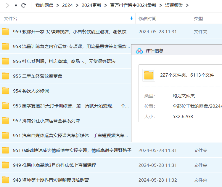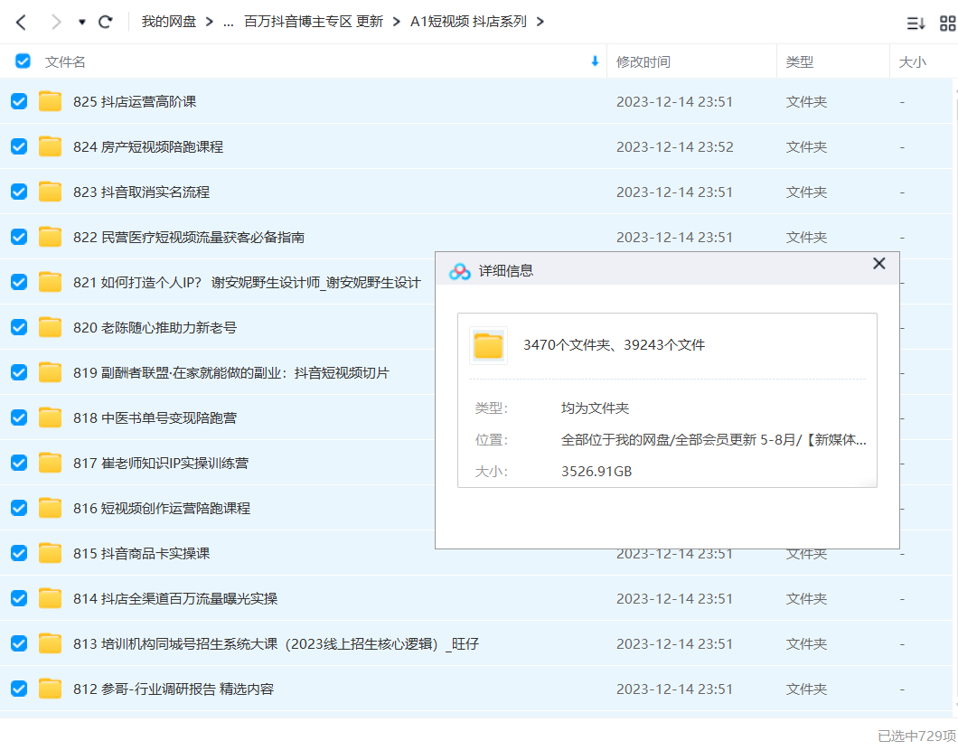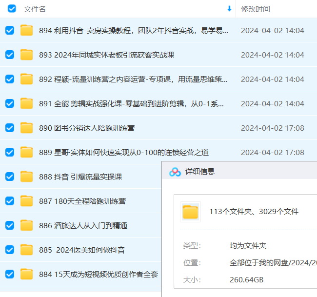 2023年1-5月短视频 更新 05月 071零基础玩赚本地生活 070主播课S 069抖音QQ怀旧直播项目 068 2023最新千川实操课 067小白7天快速起号:dou+起号运营实操课,1小时涨粉10000+玩法实操演示 066短视频内容创作20天实战运营课,快速掌握短视频领域,洞察短视频新玩法 065 2023短视频流量实战 064抖音好物分享变现课 063半无人直播实战课 062本地同城生活运营师实操课 061 ChatGPT创作短视频拍摄脚本素材 060怀旧QQ视频直播撸音浪教程 059如何套模板打开播放量,2023短视频起号必学课44节(送钩子模板和文档资料) 058 2023灯光-美食短视频课,从0开始系统化掌握常亮灯拍摄美食短视频的相关技能 057实体老板利润-增长实战课,让实体生意业绩快速提升0 056摄影师IP营第4期,学营销思维,打造个人品牌,帮助摄影师涨粉变现 055不拍视频不直播如何做好本地同城生活,个人快速入局本地生活必学课 054不露脸、不带货日入500+的表白祝福类直播间玩法 053 AI换脸视频+直播教程 052大猫切软件1.0 051抖音商城流量运营商品卡流量获取猜你喜欢流量玩法(茂隆) 050实操分享2.0(图书起号实战课),手把手教你如何从0-1玩转图书起号! 049 5月课程 048电影解说课程B 047抖音0粉音乐推广赚佣金项目 046 1万播放充值500!三级分销小说推文模式!听潮阁学社黑岩故事会实操全流程 045抖音电商实战5月10号线下现场打号录屏,从100多人录的,总共41分钟 044 2023抖音小程序专业变现课经验分享爆发趋势变现逻辑养高权重号剪辑等 043珠宝人必备的手机摄影训练营第7期 042小绿点直播录制 041带美业人-做直播,抢占同城流量,打造门店盈利闭环系统从0到月销3000单 040热门短视频带货实战掌握流量密码做热门视频打造有流量的短视频带货账号 039 2023直播·逻辑课,抖音底层逻辑+实操方法掌握,锻炼提升直播能力 038 2023直播带货起号实操课,适合一场低于·10万gmv的小白进修各种直播玩法 037如何打造一个高流量的带货账号,好物分享实操课程,内容详细易懂 036本地生活素人培训班:从0-1落地实操课程,方法技术,实战应用,案例解析 035 2023抖音直播带货实战线下课:教你轻松玩赚抖音,3天玩爆·直播间! 034 2023本地生活-获客玩法,全方位实体商家运营课程(9节视频课) 033本地生活实战运营必修课,本地生活商家-团购运营的宝藏教程 032抖音答案之书真人不露脸直播 031抖音AI作图项目,0门槛手机软件一键生成原创图文,每天半小时,日入500+稳定长期 030高级直播运营系统课 029本地生活服务商全系列运营 028相机美食高清短视频教学 027 5月最新抖音直播玩法,日入5000+ 026 2023手机0基础拍摄剪辑培训班:随手拍出·仪式感 025 2023餐饮老板-爆店流量包,餐饮运营培训课程,破解餐饮店老板流量焦虑 024视频号直播运营 023每日忆笑盘点最新 022零食素材分享 021口播拍摄技巧 020抖音团购同城生活运营策略,抖音本地生活该如何破局,实体店该何去何从! 019短视频锦囊篇 018超硬核的直播带货实操课 017抖音最新小程序变现项目,单视频收益6w+ 016短视频带货第16期 015抖音创业2023方法论:抖音创业商业认知大课,一站式学会在抖音上做生意 014抖音团购2023开通门店认领各种疑难问题教程,抖音门店·认领流程 013【抖音团购】本地生活运营策略 012抖音电商客服培训 011快手0粉开通官方“磁力聚星”小铃铛,0基础0费用实操无人直播“软件拉新”,每晚轻松入账1000+ 010抖音直播烧脑倒水 009 2023内容实操特训营,真人秀-导演带你打造探店IP 008 2023视频号直播·投流起号+破流速,深度拆解视频号投流模型与玩法 007抖音电商从入门到精通 006抖音电商-新手起号特训营,菜鸟变老手快速入门新手商家超全入门课程大全 005百万大V2023新版营销课账号·内容·运营全新升级通关短视 004短视频-达人创作营一部手机玩赚好物种草团购探店你就是下一个达人超新星 003 2023直播-场景化运营+场景素材库,1000多个直播场景参考! 002连怼·打爆蓝海·单品,2023短视频·带货好物分享·实战课! 001 30·亿大卖·分享企业·成功之道-亚马逊·团队管理与决策领导力 04月 071餐饮人招学员实操课,餐饮人如何通过短视频成交,高成交、效率高的做号流程 070 3月最新实操线下课高清视频+课件,如何玩转小而美,高毛利直播间 069小红书-90天训练营-第7期,熟悉新媒体平台从零到一做爆款内容商业变现 068短视频精准获客为企业打造短视频自媒体账号(精准定位+引流+持续获客) 067抖音电商直播投流起号课程巨量千川全流程投放+小店随心推全流程+起号方式 066表情包变现课程 065 2023短视频-社群3.0,人人都可以成为新媒体-导演(包含内部社群直播课全套) 064话术 063品牌-营销数据分析课,行业洞察-竞品分析-产品开发-爆品打造 062 2023纯自然流不亏品起盘直播间,实操直播带货(视频课+话术文档) 061餐饮店营销实操课,省钱撬流量方法,爆店方法,小白能立刻上手的课 060 2023短视频直播内容·电商培训班,视频内容+直播内容+兴趣内容+产品内容 059鼠来宝视频教程+素材 058 2023微信视频号引流+变现训练营:手把手带你玩转视频号短视频和直播运营! 057地产行业如何利用抖音0元获客:地产项目0-1快速引爆短视频流量,干货教学 056人工智能AI赋能短视频创作课 055 AI航海计划-自媒体精英课 054地产-直播间0-1话术胶囊,知道怎么通过话术去拉直播间数据 053抖音直播-纯自然流量起号,起号逻辑话术实操培训(更新至4月) 052 2023知识