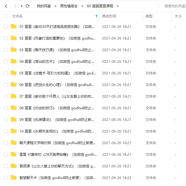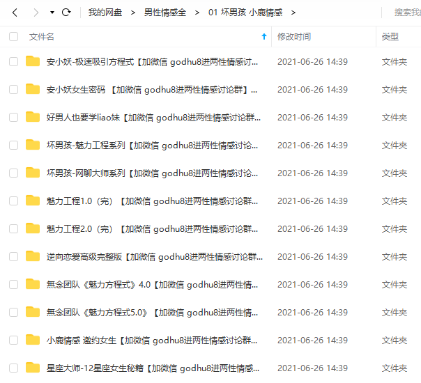 注:近期男性情感⽂件和谐严重,所以⼤部分⽂件是以在线版和压缩备份版存在,采取特殊压缩⽅法,⼏千⽂件近3年没有和谐情况,各位学员放⼼购买!