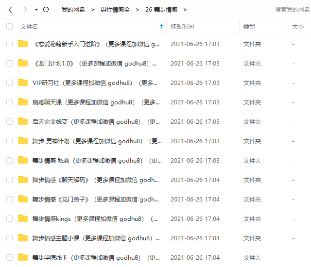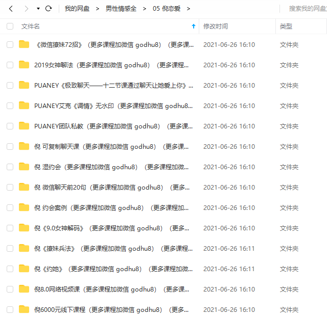 包括:某浪情感教育、魔卡、NEY倪、绅士派、欧阳浮夸、但丁、七烟、爱情光谱、舞步学院、Chris、乌鸦、爱上情感、男哥等等。因为课程是按照不同团队来进行划分整理的,所以大家能够更好的系统学习喜欢的团队的课程。